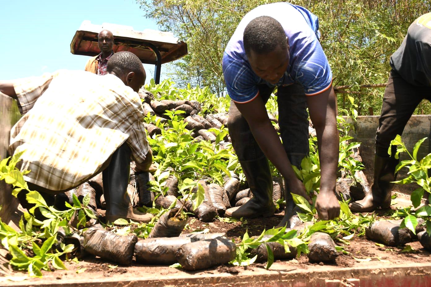 The exercise, led by County Executive Committee Member (CECM) for Agriculture, Irrigation, Livestock and Fisheries Wilfred Long’ronyang, saw four farmers receive the seedlings to support the expansion of coffee farming in the area.